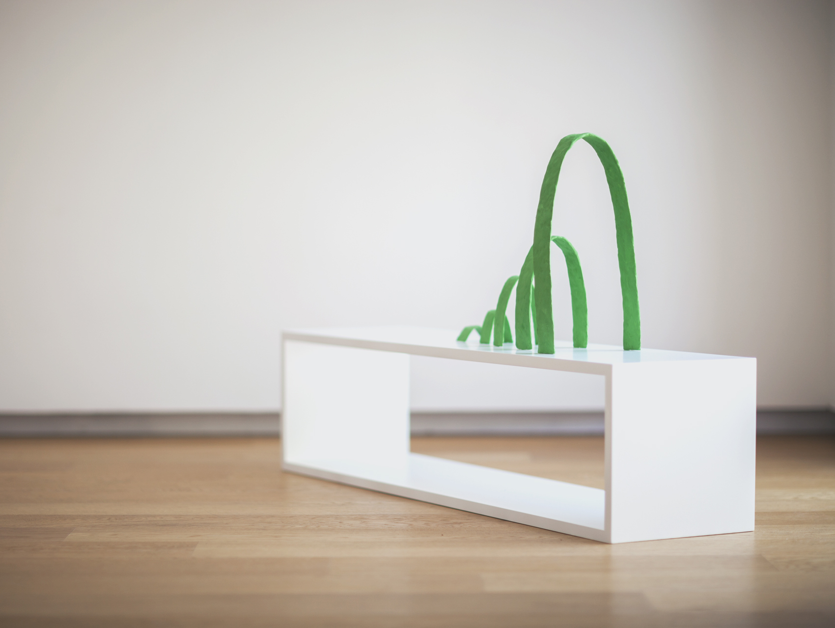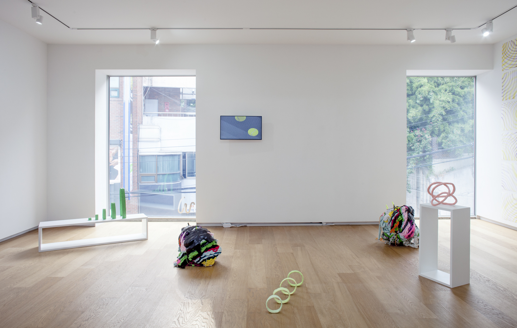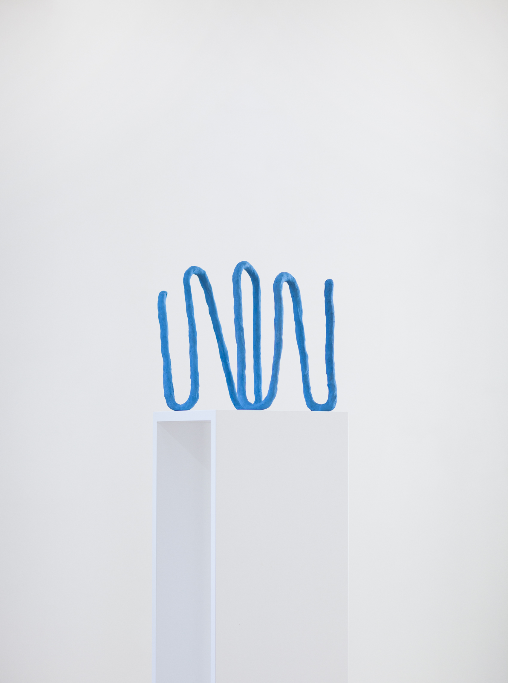 Circulation and repetition through the intertwining of lines continue with Taeyoon Kim, who’s been working with the idea stream of time developed through self-awareness. Unable to overcome someone’s mighty blow, the tennis ball in ‘Ping’ distorts or bounces off. This exaggerated rendering frequent in Japanese animation is a visualization of momentary speed and power felt when exchanging the ball. In appropriation of these images, Taeyoon Kim reifies his perception of the physicality of time through the momentum of an object. Curved sculptures suggesting waves or graphs also seem to be intentions of visualizing abstraction of time.